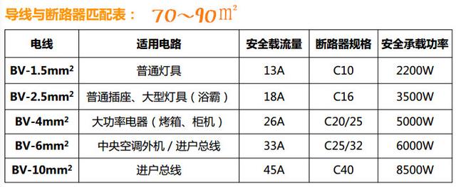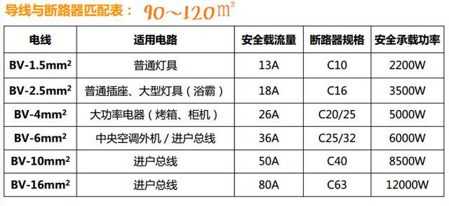 具体的电线和断路器怎样匹配,看下面两张图: