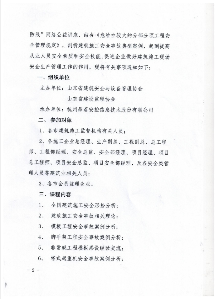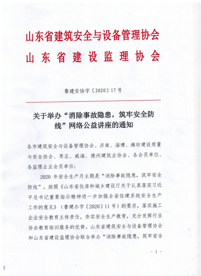 关于举办“消除事故隐患,筑牢安全防线”网络公益讲座的通知