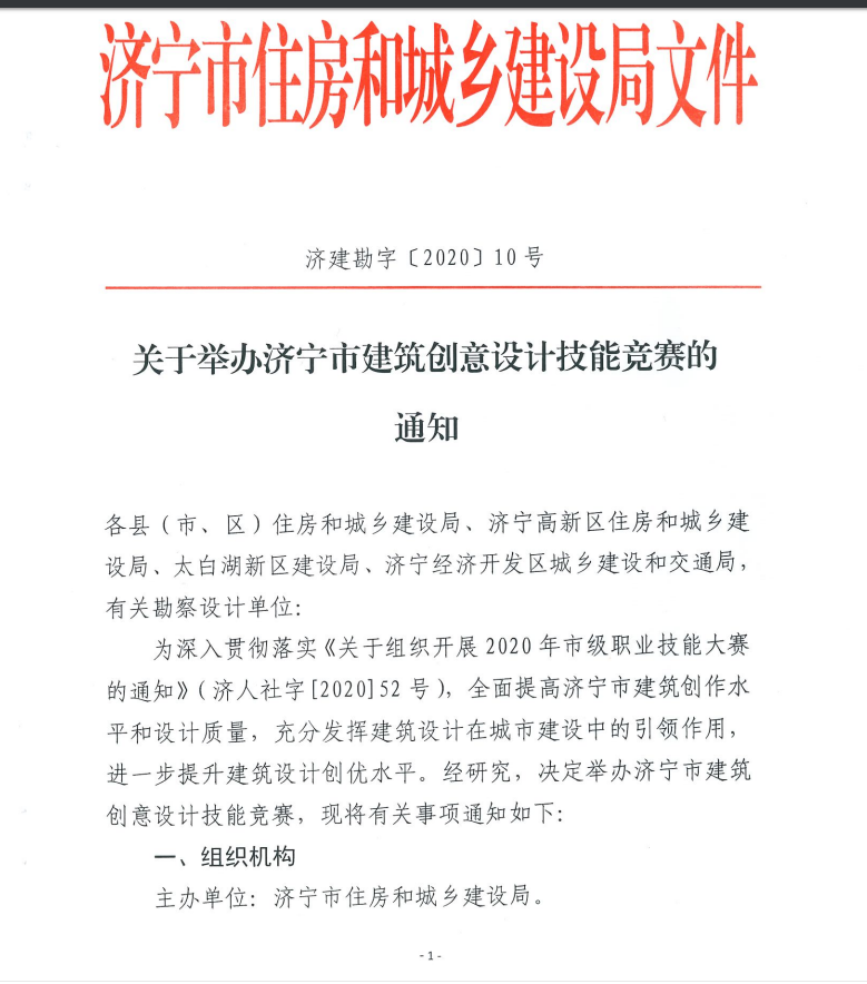 关于举办济宁市建筑创意设计技能竞赛的通知
