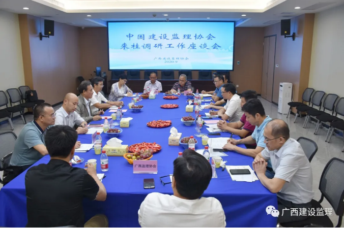 2020年9月22日下午,借全国建设监理协会秘书长工作会议在广西南宁举办之机,中国建设监理协会会长王早生率领副会长兼秘书长王学军、副秘书长王月等一行4人深入调研,在广西城建咨询有限公司召开广西工程监理行业调研工作座谈会,了解广西监理企业现状,探讨广西工程监理行业发展道路。座谈会由本会会长陈群毓主持,本会部分副会长、秘书长、副秘书长,南宁、柳州、桂林市企业代表,交通、水利、电力行业企业代表参加了会议。