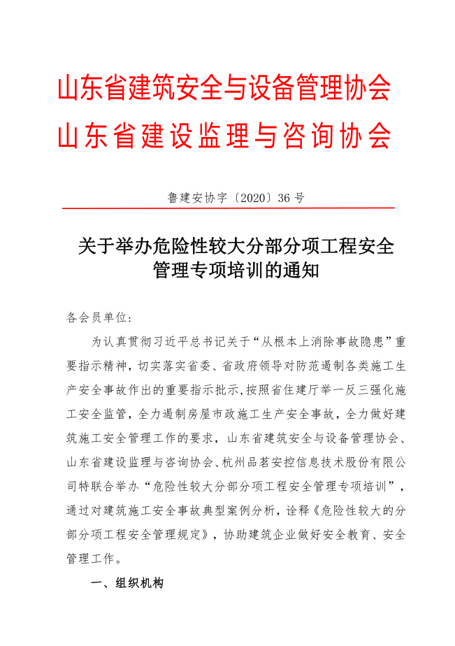 关于举办危险性较大分部分项工程安全管理专项培训的通知