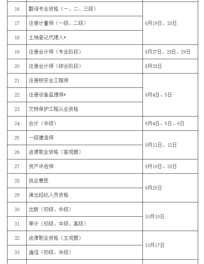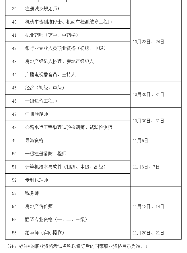为做好专业技术人员职业资格考试规划和管理工作,便于广大专业技术人员参加职业资格考试,经商有关部门同意,现就2021年度专业技术人员职业资格考试计划及有关事项通知如下: