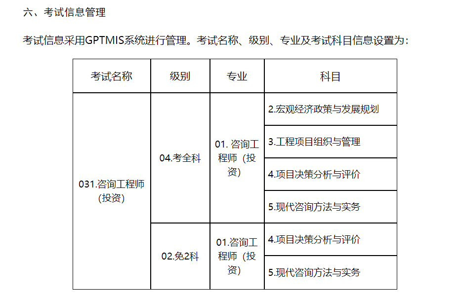 上述人员可免试部分科目,只参加《项目决策分析与评价》和《现代咨询方法与实务》2个科目的考试。