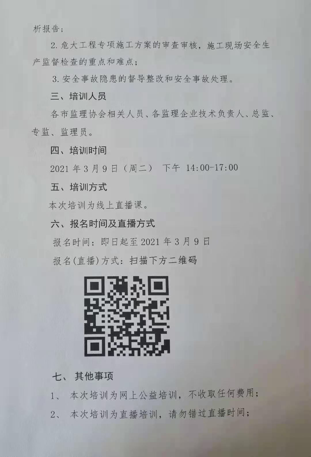 关于举办建设工程安全生产管理监理工作专项培训的通知