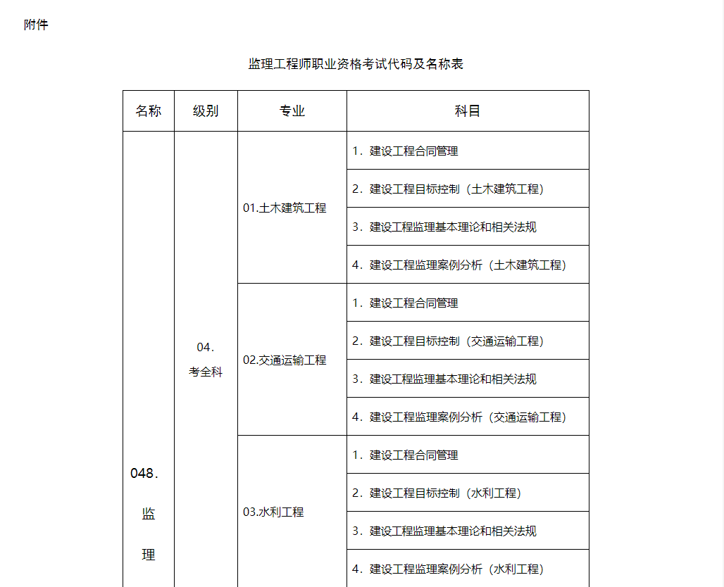 附件:监理工程师职业资格考试代码及名称表