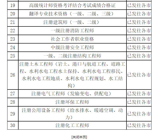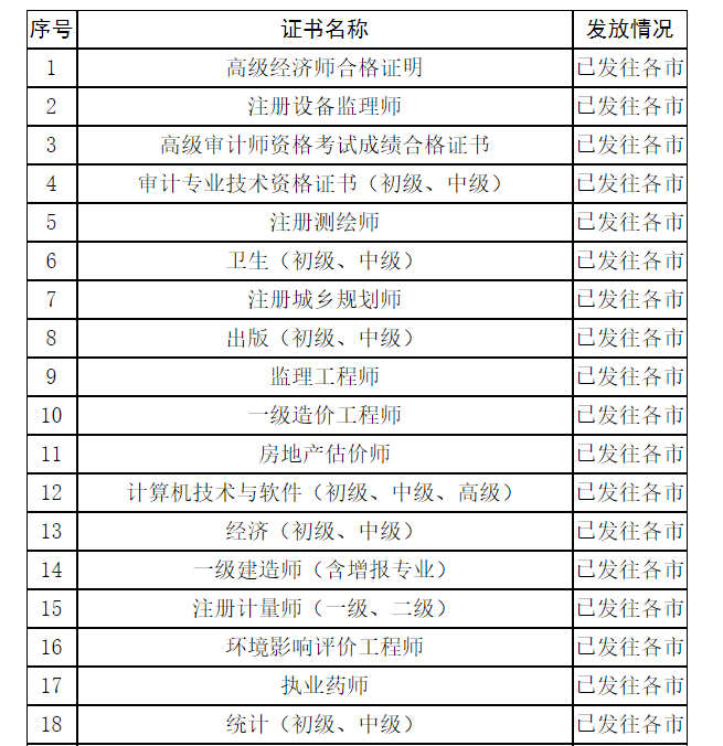 2020年度专业技术人员职业资格证书发放状态